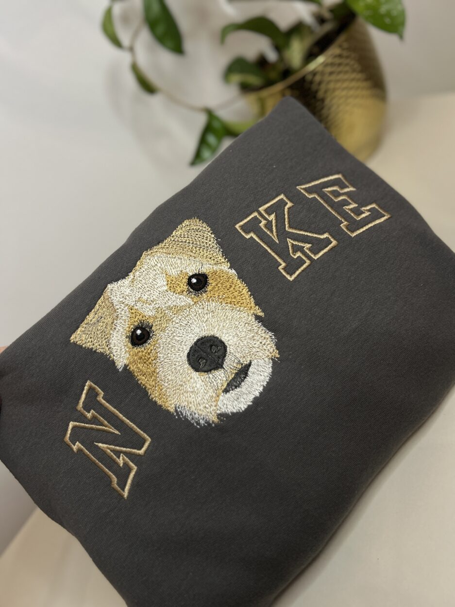 Wyhaftowane osoby lub zwierzaki będą miały tak zwrócone twarze/pyszczki, taką mimikę jak na zdjęciu (np. jeśli zwierzak ma pyszczek skierowany w bok i nie widać jednej części pyszczka – projekt będzie również tak wyglądał) Jeśli na tym konkretnym zdjęciu, kolorystyka odbiega od rzeczywistości, prześlij więcej zdjęć, na których będziemy mogli się oprzeć.