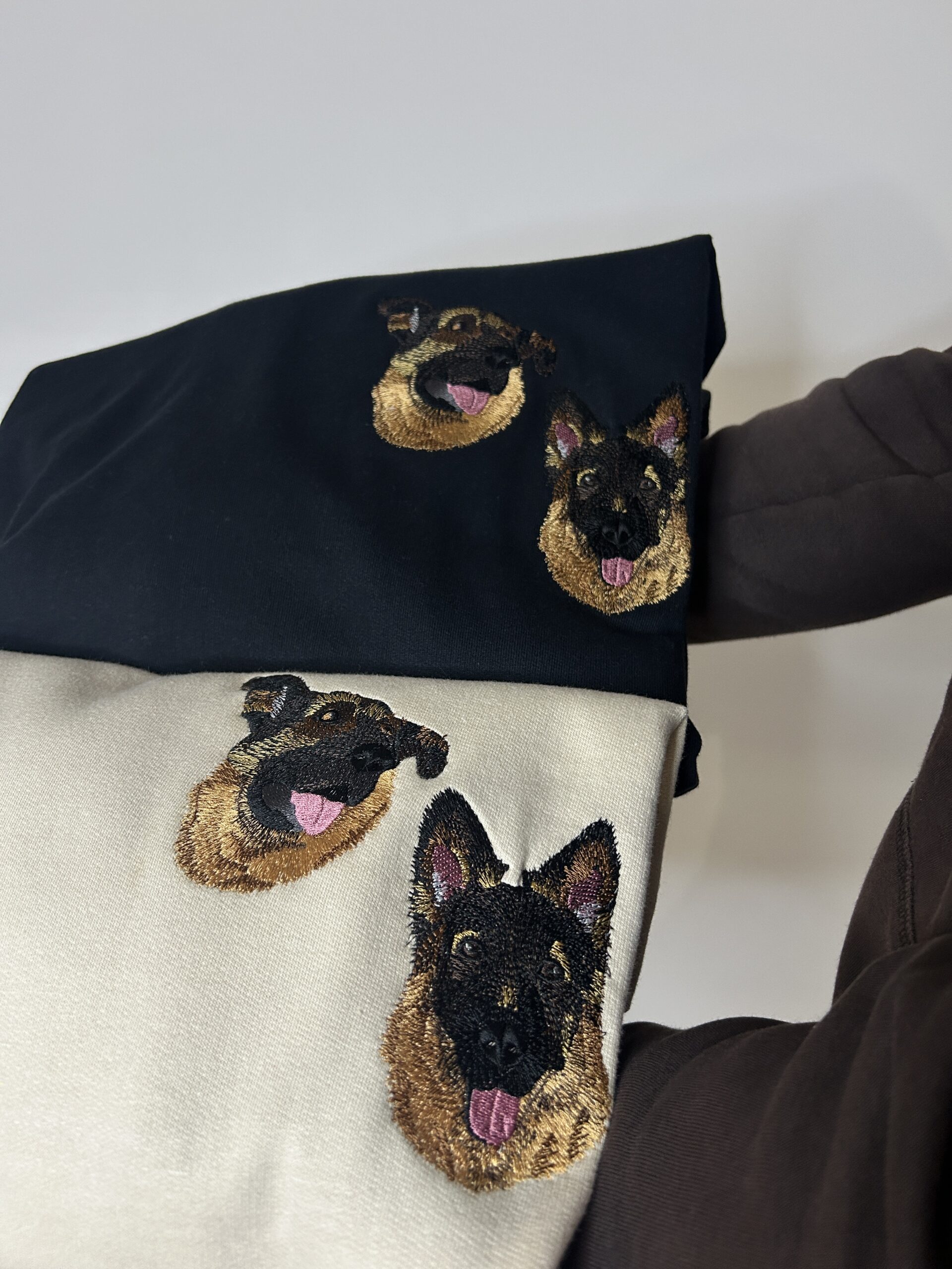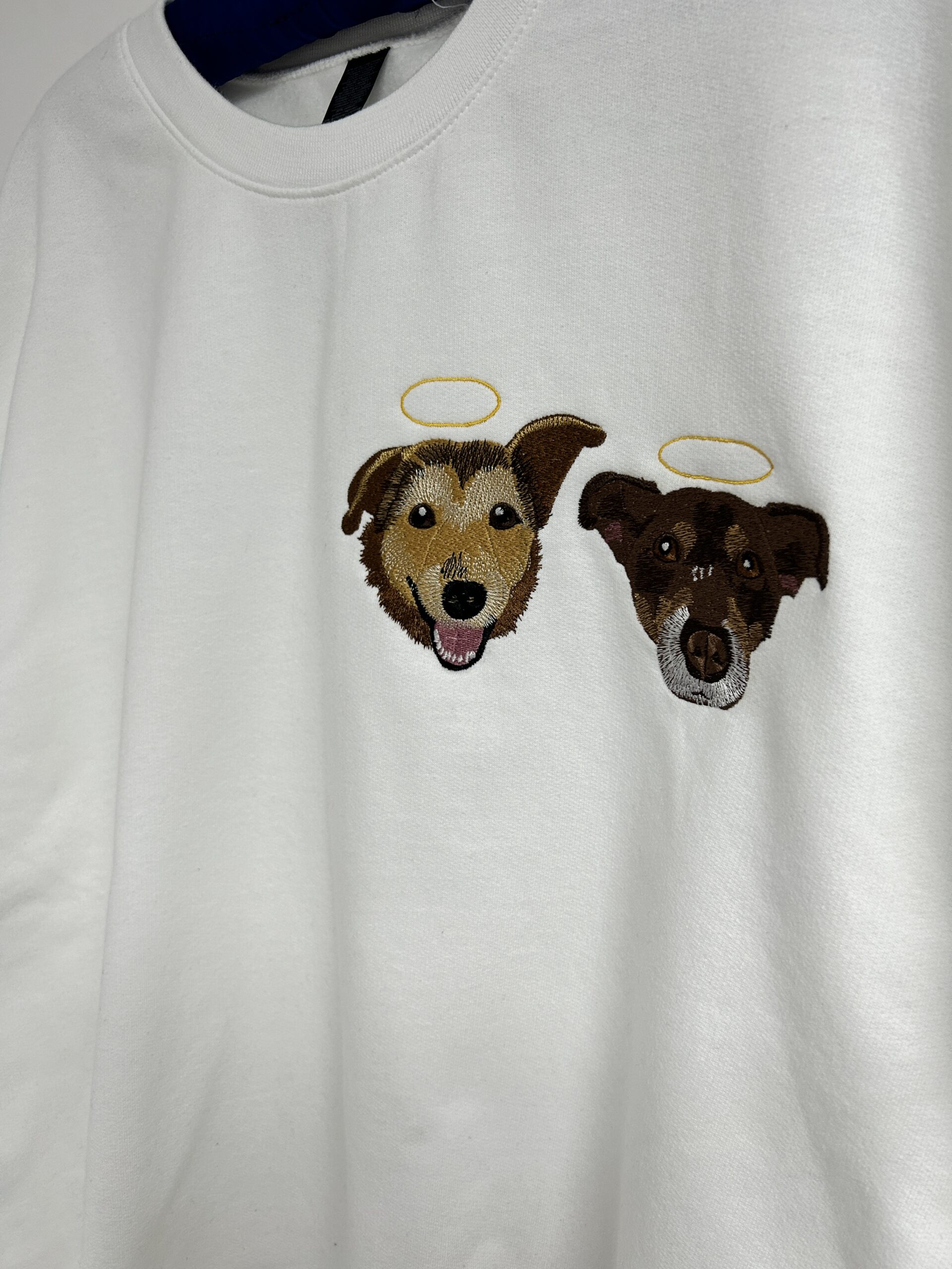 Wyhaftowane osoby lub zwierzaki będą miały tak zwrócone twarze/pyszczki, taką mimikę jak na zdjęciu (np. jeśli zwierzak ma pyszczek skierowany w bok i nie widać jednej części pyszczka – projekt będzie również tak wyglądał) Jeśli na tym konkretnym zdjęciu, kolorystyka odbiega od rzeczywistości, prześlij więcej zdjęć, na których będziemy mogli się oprzeć.