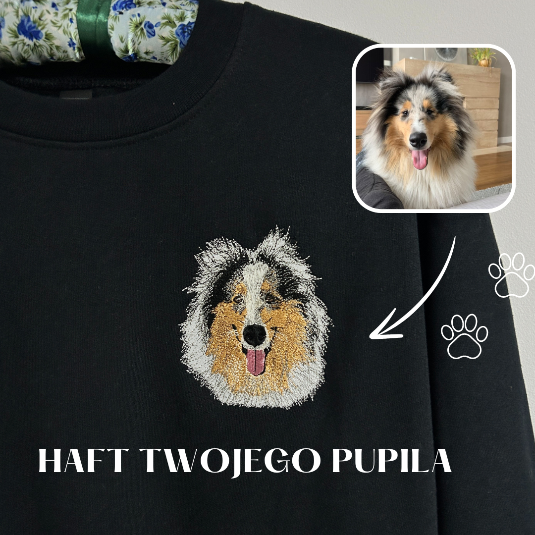 Bluza z personalizowanym haftem komputerowym. Wygodna, stylowa i unikalna – dodaj zdjecie swojego zwierzaka, aby zawsze mieć go przy sobie.