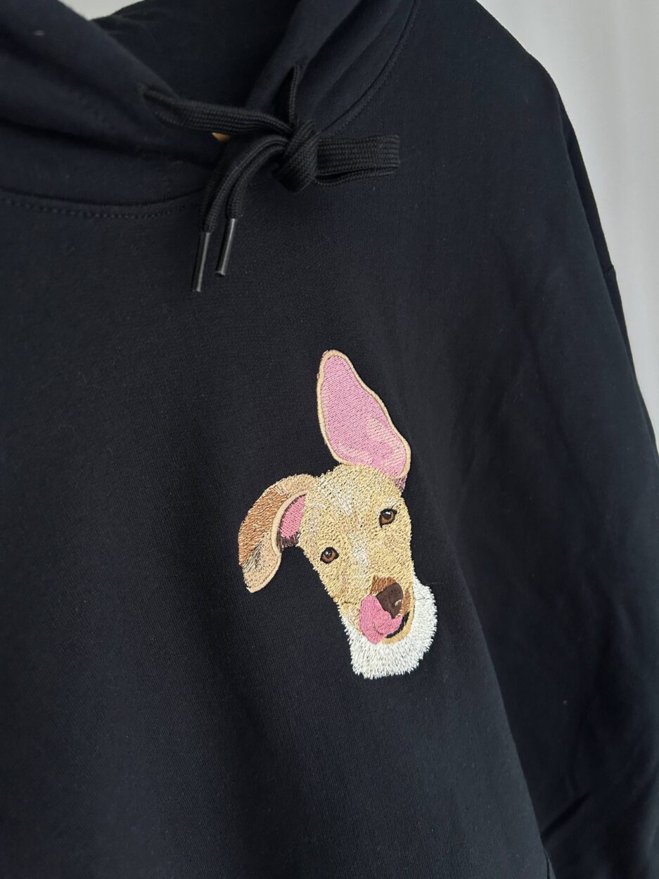 Wyhaftowane osoby lub zwierzaki będą miały tak zwrócone twarze/pyszczki, taką mimikę jak na zdjęciu (np. jeśli zwierzak ma pyszczek skierowany w bok i nie widać jednej części pyszczka – projekt będzie również tak wyglądał) Jeśli na tym konkretnym zdjęciu, kolorystyka odbiega od rzeczywistości, prześlij więcej zdjęć, na których będziemy mogli się oprzeć.