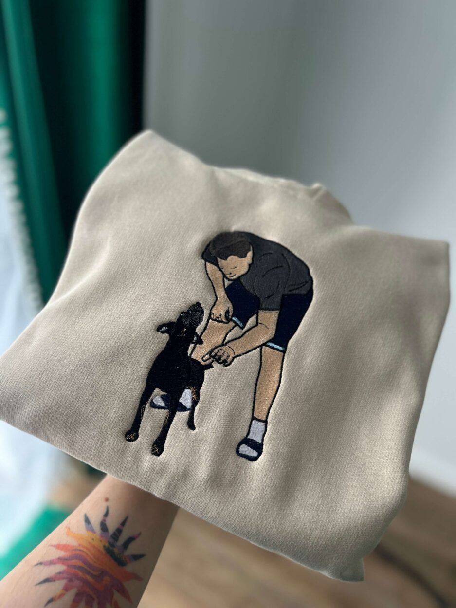 Wyhaftowane osoby lub zwierzaki będą miały tak zwrócone twarze/pyszczki, taką mimikę jak na zdjęciu (np. jeśli zwierzak ma pyszczek skierowany w bok i nie widać jednej części pyszczka – projekt będzie również tak wyglądał) Jeśli na tym konkretnym zdjęciu, kolorystyka odbiega od rzeczywistości, prześlij więcej zdjęć, na których będziemy mogli się oprzeć.