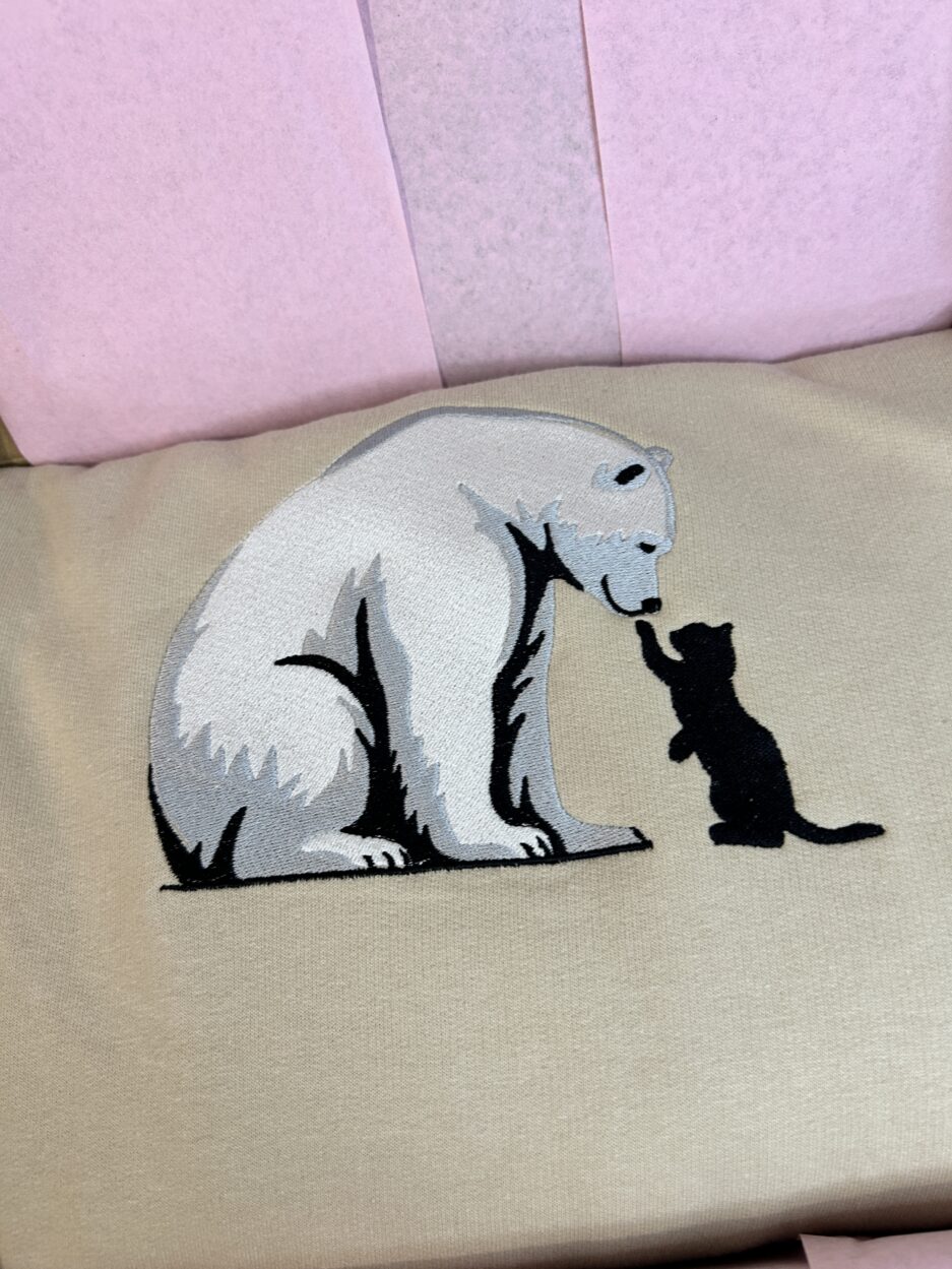 Wyhaftowane osoby lub zwierzaki będą miały tak zwrócone twarze/pyszczki, taką mimikę jak na zdjęciu (np. jeśli zwierzak ma pyszczek skierowany w bok i nie widać jednej części pyszczka – projekt będzie również tak wyglądał) Jeśli na tym konkretnym zdjęciu, kolorystyka odbiega od rzeczywistości, prześlij więcej zdjęć, na których będziemy mogli się oprzeć.