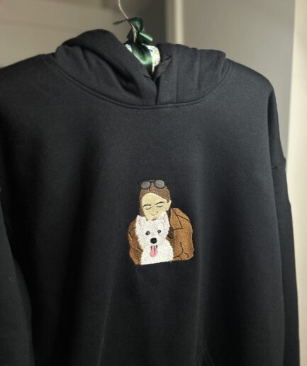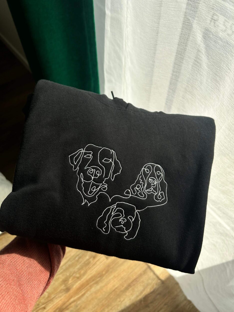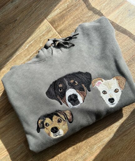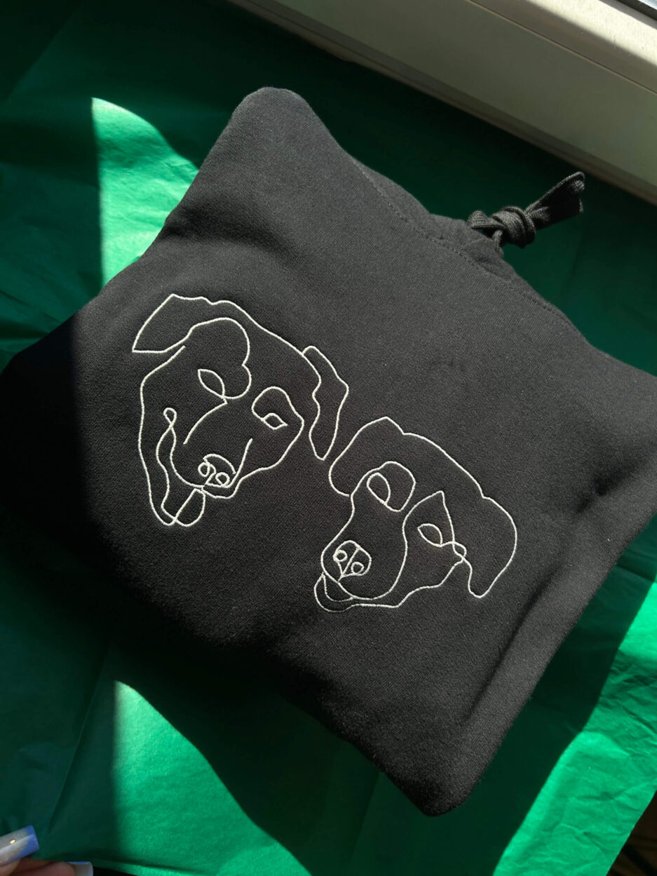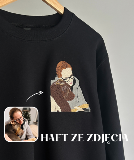Wyhaftowane osoby lub zwierzaki będą miały tak zwrócone twarze/pyszczki, taką mimikę jak na zdjęciu (np. jeśli zwierzak ma pyszczek skierowany w bok i nie widać jednej części pyszczka – projekt będzie również tak wyglądał) Jeśli na tym konkretnym zdjęciu, kolorystyka odbiega od rzeczywistości, prześlij więcej zdjęć, na których będziemy mogli się oprzeć.
