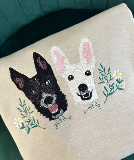 Wyhaftowane osoby lub zwierzaki będą miały tak zwrócone twarze/pyszczki, taką mimikę jak na zdjęciu (np. jeśli zwierzak ma pyszczek skierowany w bok i nie widać jednej części pyszczka – projekt będzie również tak wyglądał) Jeśli na tym konkretnym zdjęciu, kolorystyka odbiega od rzeczywistości, prześlij więcej zdjęć, na których będziemy mogli się oprzeć.