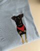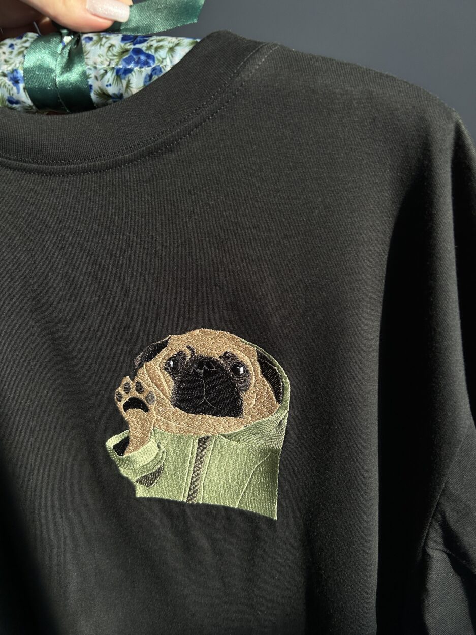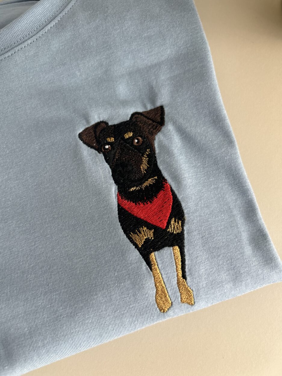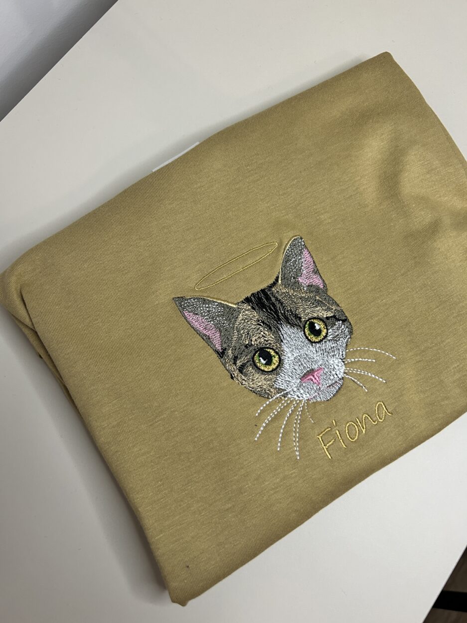 Wyhaftowane osoby lub zwierzaki będą miały tak zwrócone twarze/pyszczki, taką mimikę jak na zdjęciu (np. jeśli zwierzak ma pyszczek skierowany w bok i nie widać jednej części pyszczka – projekt będzie również tak wyglądał) Jeśli na tym konkretnym zdjęciu, kolorystyka odbiega od rzeczywistości, prześlij więcej zdjęć, na których będziemy mogli się oprzeć.